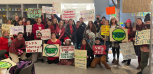 - We held a Day of Action on 12/21/22 with members walking from GMS to the Town Common, picketing outside City Hall, and attending the City Council meeting to make public comments about the mayor’s proposed education budget which does not have the funds necessary to provide Greenfield students and educators with the schools they deserve. You can read more in The Recorder article here.