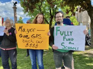 - We held a Walk and Rally on 5/17/23 and a follow-up Protest on 5/25/23 to show support for our schools as they faced severe underfunding in the Mayor’s proposed budget.